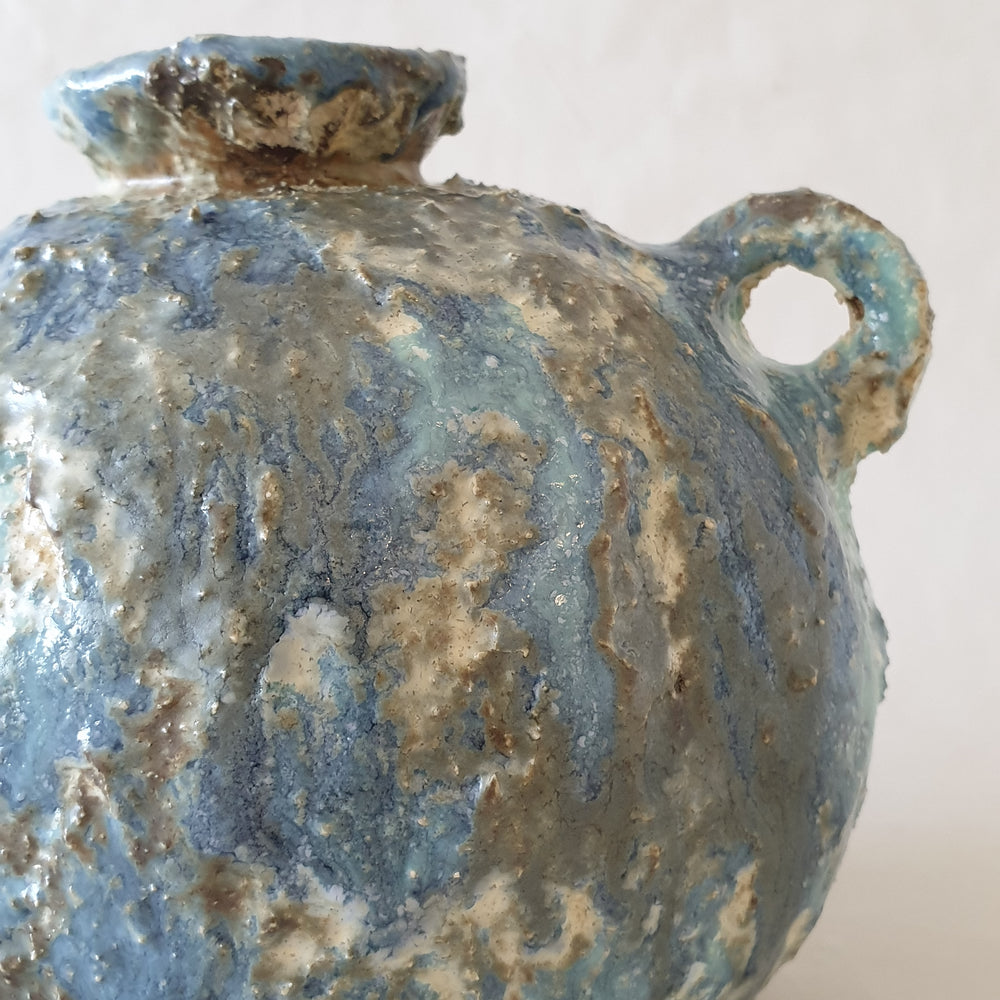 The ceramic vase Echoes of Time – Eternety captures the essence of aging and renewal. Its deep blue and oxidized gold surface reflects the marks of time, transforming the piece into a visual story of nature’s evolving beauty. Inspired by the natural aging process of metals and ceramics, it symbolizes change and resilience.This vase embodies the passage of time, with its organic shape and layered textures representing the interaction of light, elements, and transformation. The contrast between dark blue and shimmering gold creates a dynamic, living artwork.