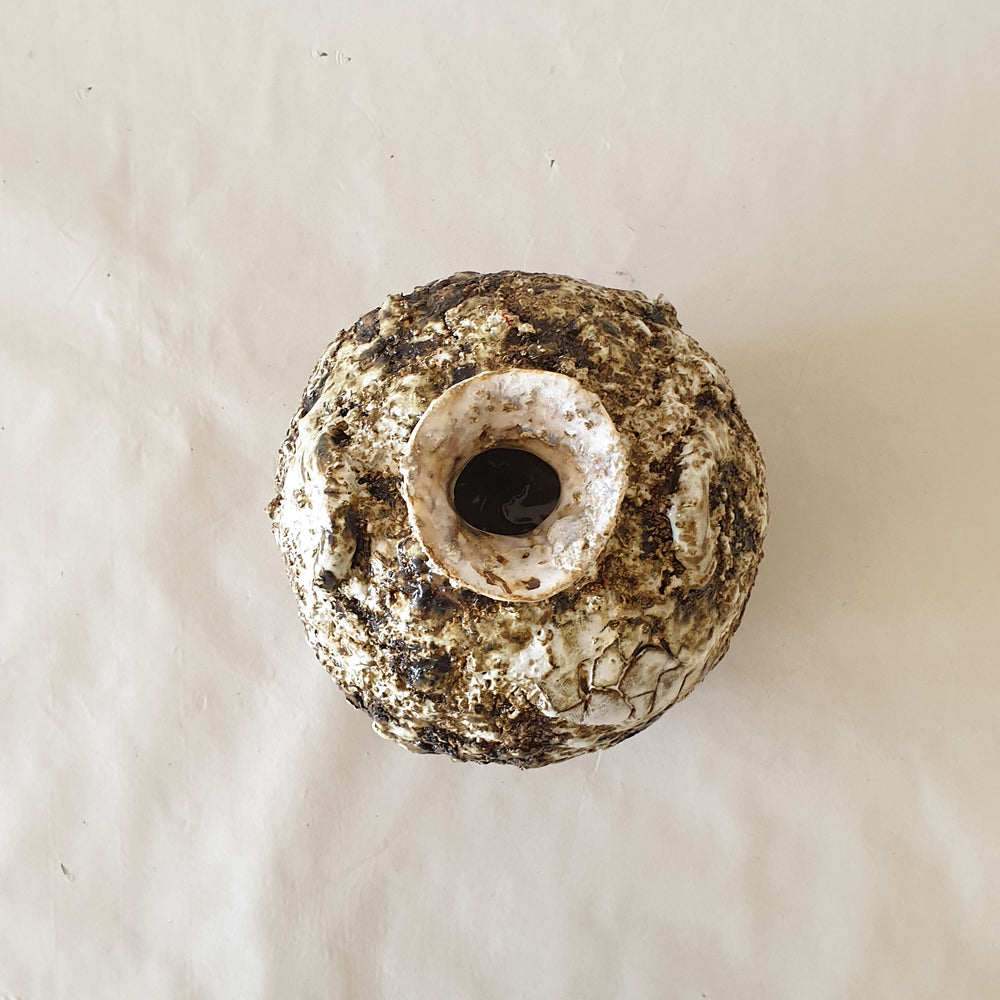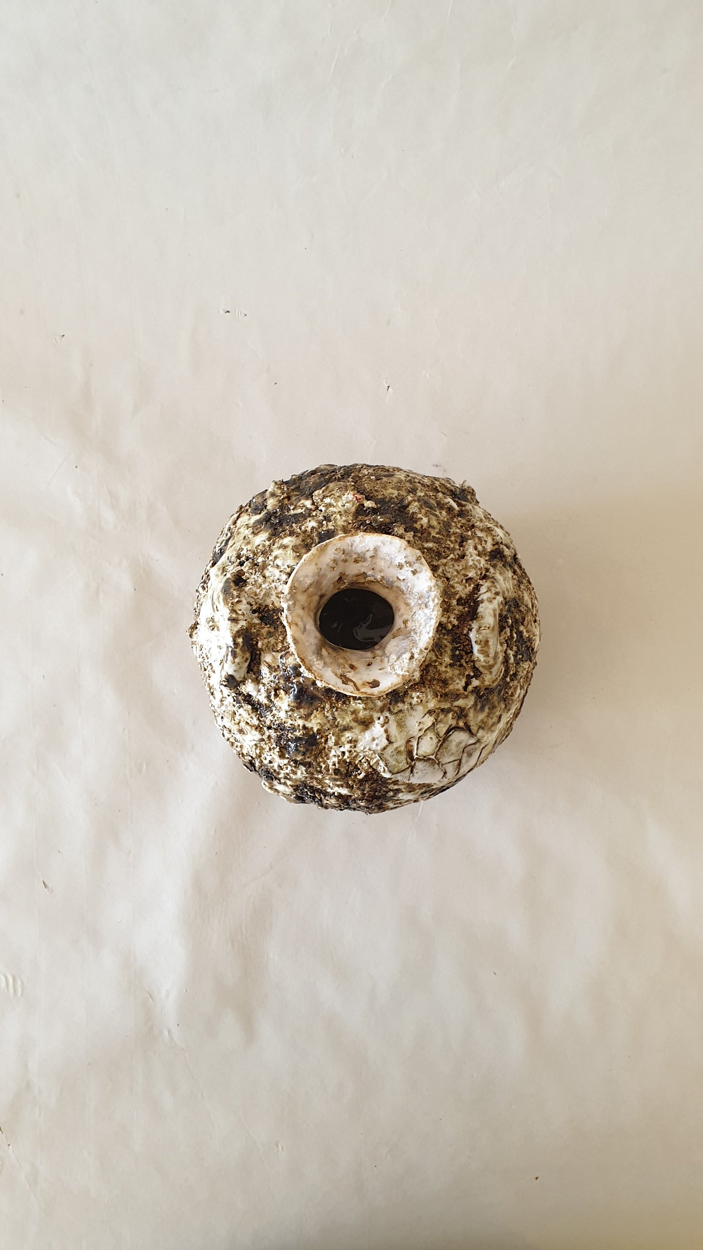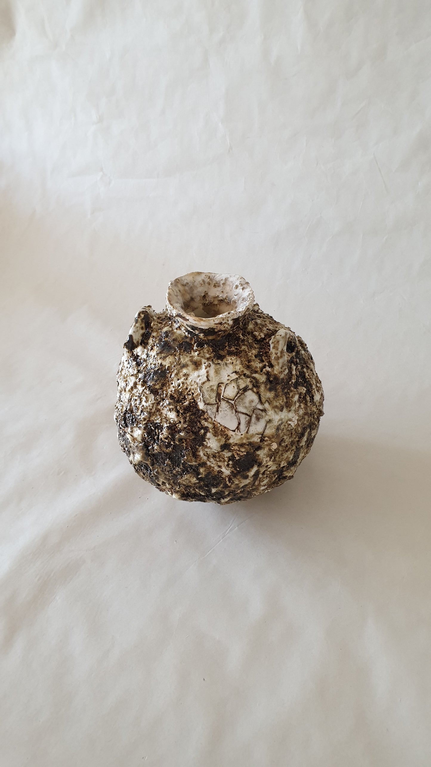 The ceramic vase Silent Stories of the Earth – Grace in Time is a celebration of raw beauty, shaped by time and the silent erosion of existence. Its aged white and earthy brown surface reflects resilience and transformation, capturing the marks of time in its deeply textured form.
