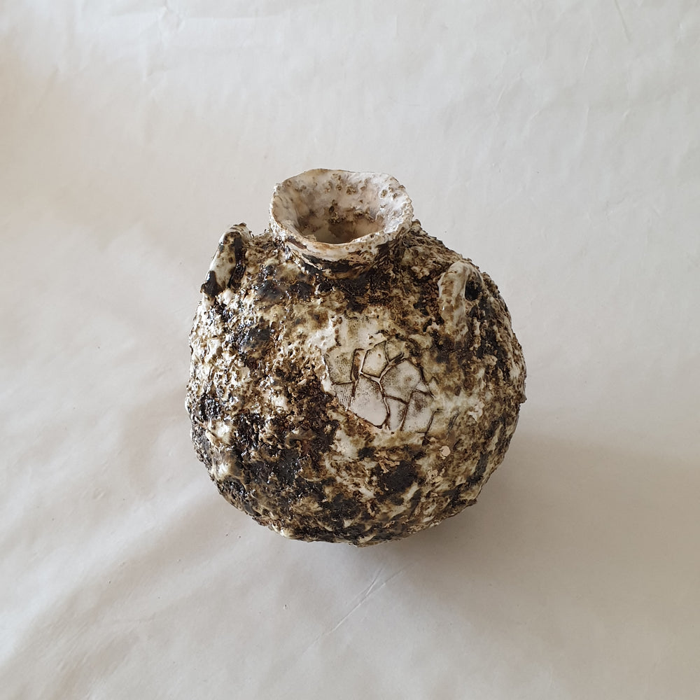 Every crack and layered detail on this vase tells a story of endurance and natural aging. Its imperfect, organic shape highlights the beauty of change and transformation, making it a timeless and rugged piece.