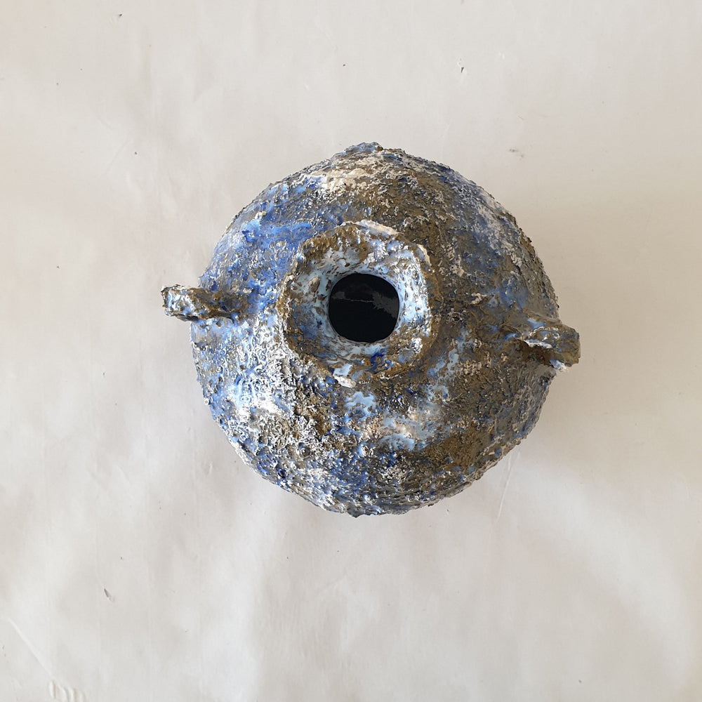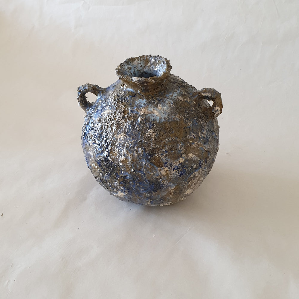 The ceramic vase Silent Stories of the Earth – The story of time embodies the raw beauty of aging and transformation. Its aged white and earthy brown tones highlight the natural process of decay and rebirth, creating a textured surface that tells a story of endurance and change.