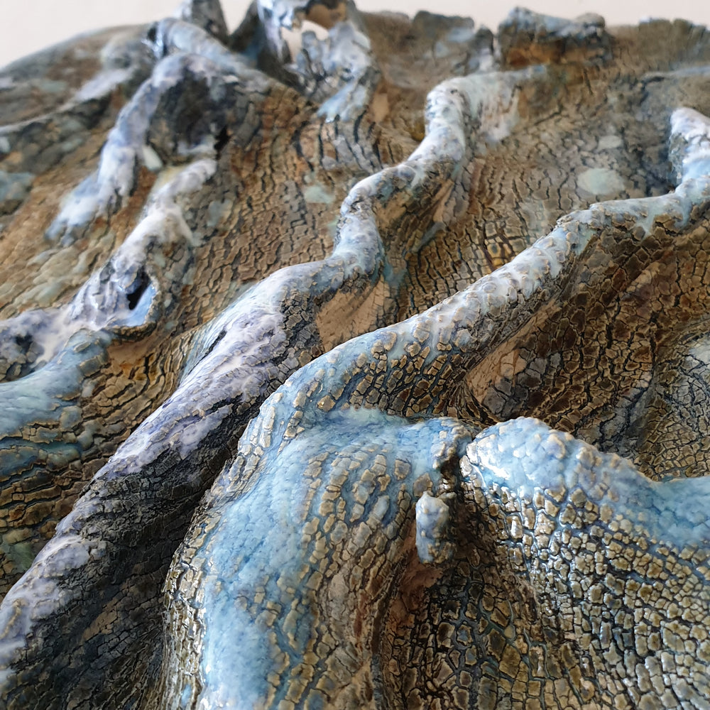 Silent Stories of the Earth – The Relief of Memory embodies the continuous transformation of the earth’s surface. Sculpted by natural forces, this ceramic relief reflects the beauty of fractured forms and layered textures, revealing lost histories and hidden narratives.