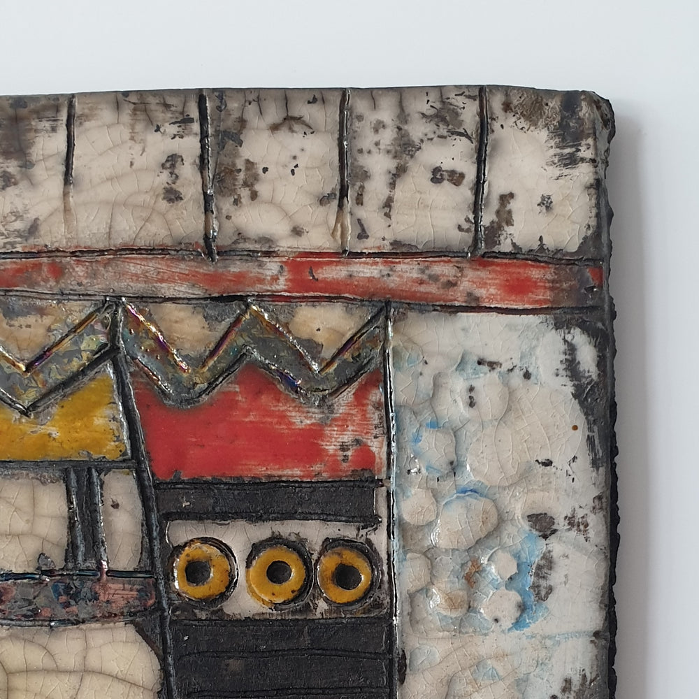 The architectural division of this piece gives it the impression of a preserved mural, reflecting the strength and continuity of Albanian culture
