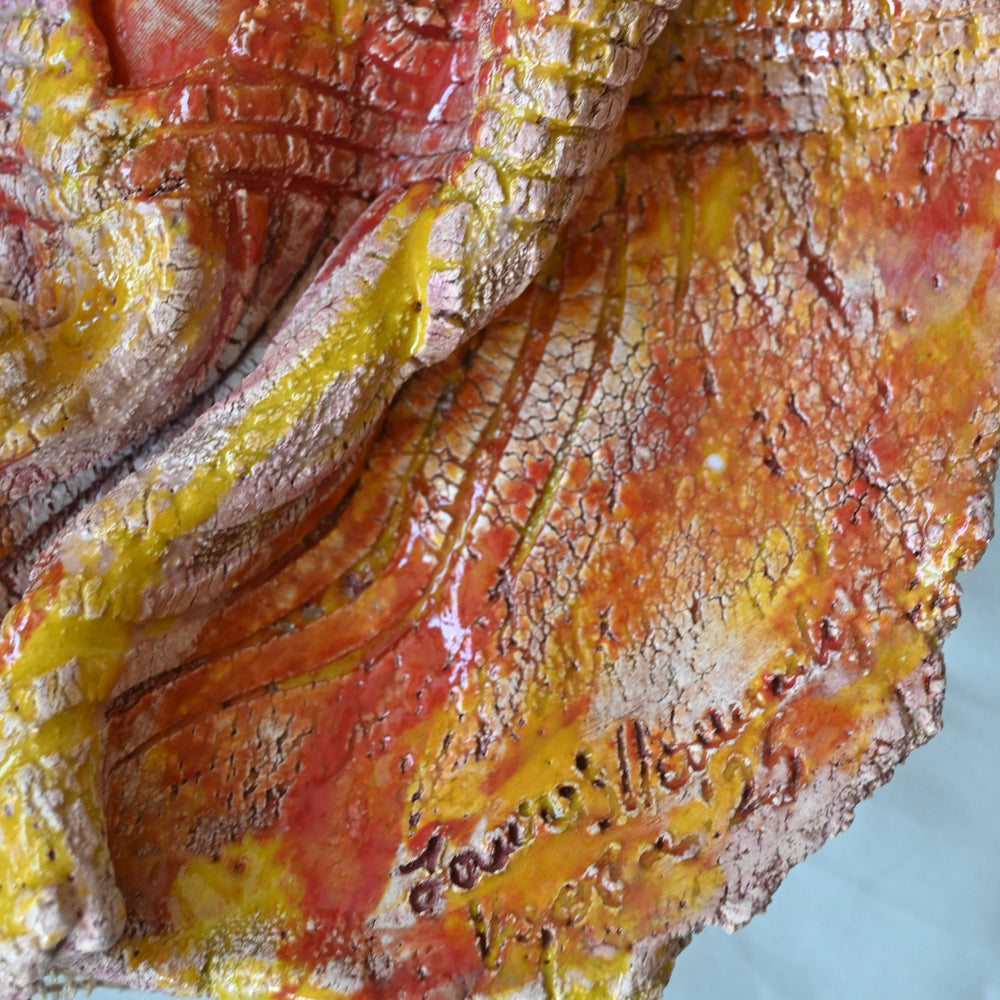 Technique: Kiln-fired ceramic with textured glaze and oxide accents